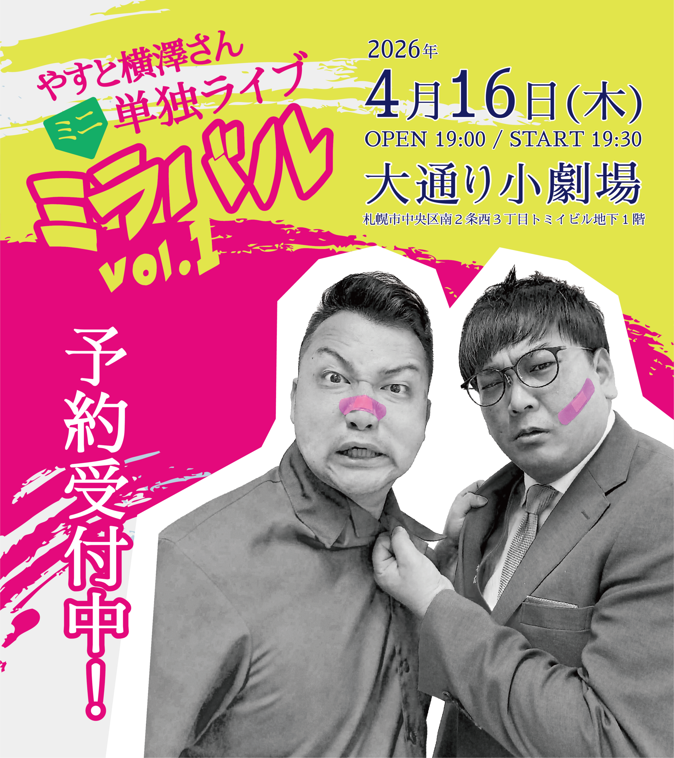 2026/3/1 やすと横澤さんミニ単独ライブ「ミラバル」vol.1 チケット受付スタート!